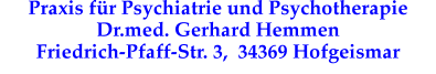Allgemeinpsychiatrie, Psychotherapie, Gerontopsychiatrie